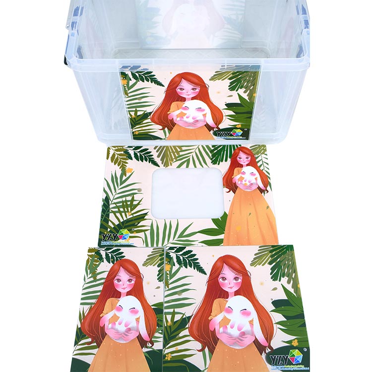 Az YZY az öntőformán belüli címkézési eljárást alkalmazza, amely a vásárló által testreszabott címkemintákat a Tote Box felületére olvasztja, így integrált és zökkenőmentes kialakítás érhető el anélkül, hogy további kézi ragasztásra lenne szükség. Ezenkívül az ügyfelek dönthetnek úgy, hogy a címkét félig átlátszóvá teszik, így biztosítva, hogy a végtermék a praktikum és az esztétika ötvöződik. Az átlátszó doboz kényelmessé teszi a fogyasztók számára a benne lévő tartalom gyors azonosítását.